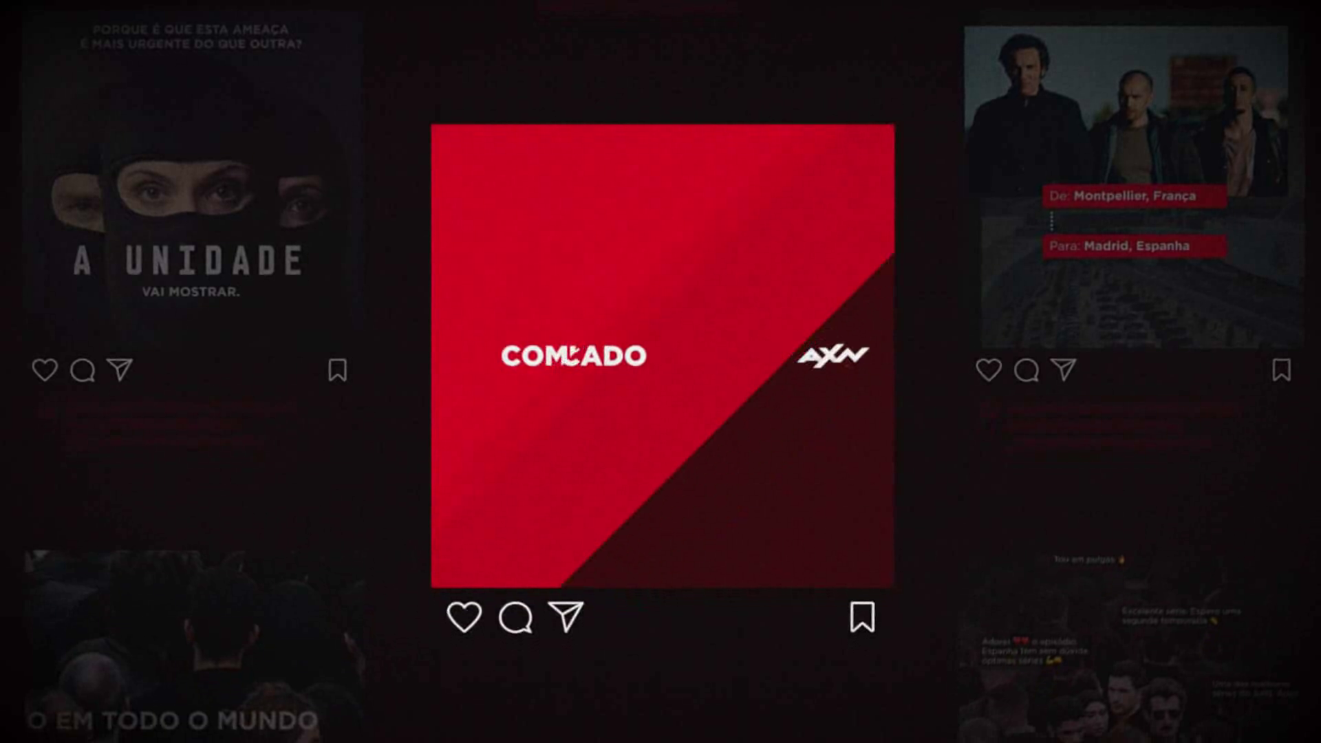 (Nota importante: esta ideia foi lançada a 11/3/2021, longe de todas as tensões políticas e sociais que ocorrem neste momento no Afeganistão.) Por ser uma série sobre terrorismo decidimos atacar a promoção da série no instagram. Para a acção, criámos contas suspeitas para os principais terroristas da série e em seu nome, fizemos comentários ofensivos em publicações sobre o lançamento de A Unidade. De seguida, emitimos um comunicado à comunidade AXN, pedindo aos seguidores que travassem os terroristas, denunciando os seus perfis através da opção "Denunciar" do Instagram, para que a própria plataforma os bloqueasse. Bastava aos participantes enviarem print screens das várias denuncias efectuadas. Os mais activos na missão ganhavam acesso exclusivo à antestreia.